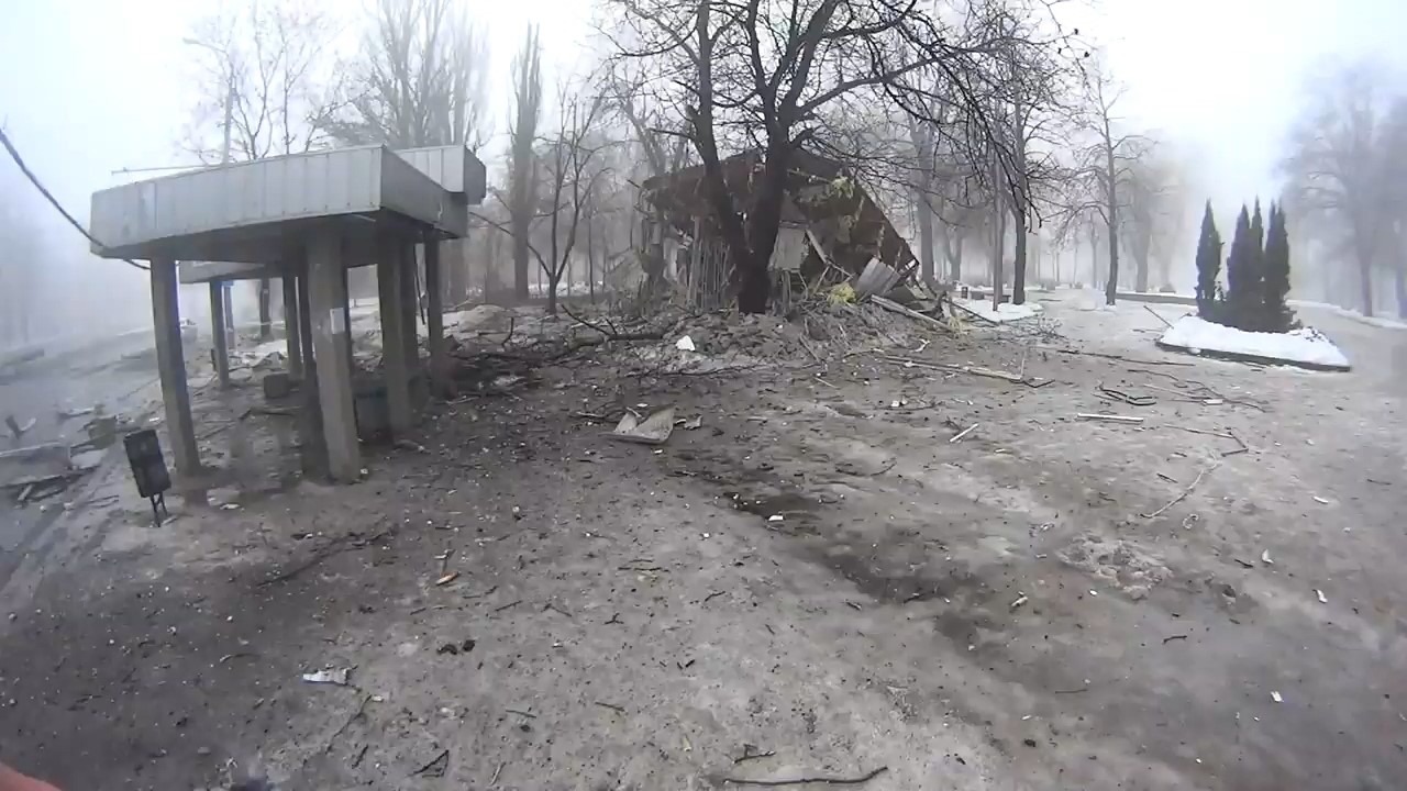 On the same day (January 20, 2015), Kievsky District of Donetsk was shelled. One of the shells exploded near the Kievsky DEC public transport stop in Kievsky Avenue.
